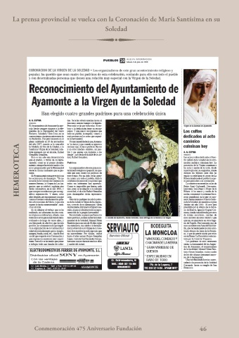 La prensa provincial se vuelca con la Coronación de María Santísima en su Soledad HEMEROTECA Conmemoración 475 Aniversario Fundación 46