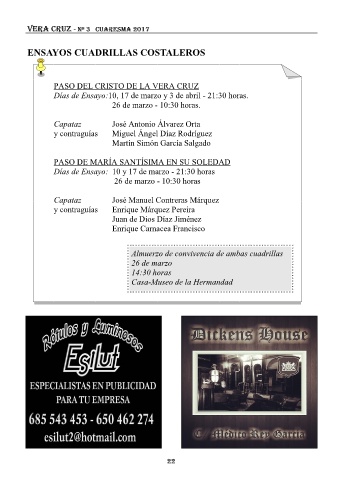 Días de Ensayo: 10 y 17 de marzo - 21:30 horas