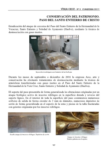Erradicación del ataque de carcoma del Paso del Santo Entierro de la Hermandad de la