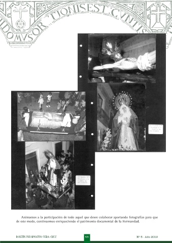 Animamos a la participación de todo aquel que desee colaborar aportando fotografías para que de este modo, continuemos enriqueciendo el patrimonio documental de la Hermandad. BOLETÍN INFORMATIVO VERA CRUZ 55 Nº 5 - Año 2019