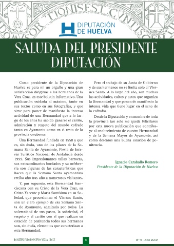 actividad de una Hermandad que a lo lar- Desde la Diputación y en nombre de toda
