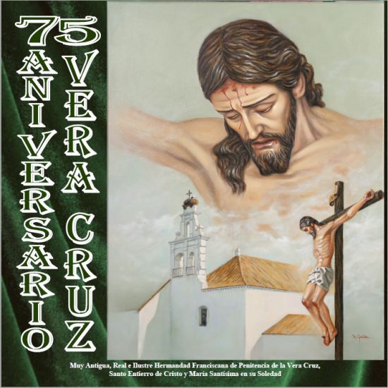 Estamos ante una cofradía que por su largo devenir, conmemora y protagoniza aniversarios y efemérides en torno a su ya lejana fundación, alrededor de su decimonónica reorganización o rememorando las bendiciones y reconstrucciones de sus amados titulares. Detrás de un elevado desamparo y de una fuerte desolación acontecidos en julio de 1936, la hermandad estuvo varios años sin conceder culto al Santísimo Cristo de la Vera Cruz. La antigua imagen había sufrido las consecuencias de un enorme atentado. Habría que esperar a octubre de 1940, fecha en la que se decidió encargar la imagen de un nuevo crucificado al ayamontino Antonio León Ortega. Con la celebración del 75 Aniversario de la Bendición del Santísimo Cristo de la Vera Cruz, homenajeamos no sólo la importancia de unos titulares que despiertan sólidas y férreas devociones, reconocemos también, la dedicación de muchos cofrades hermanos que codo a codo, lograron y logran día a día la pervivencia de esta centenaria hermandad. Hoy, teniendo presente lo conseguido, deseamos continuar caminando. Las sandalias y las alforjas que nos acompañan están llenas de historia y de fe.