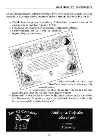 ⇒ “Siendo Franciscana esta Hermandad y Archicofradía, procurará alimentar su