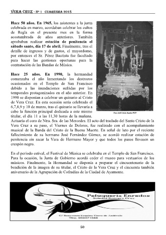 músicos. Finalmente, la Hermandad se disponía a preparar el cincuentenario de la