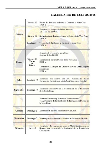 VERA CRUZ - Nº 2 CUARESMA 2016 CALENDARIO DE CULTOS 2016 27