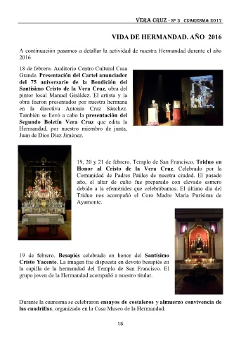 A continuación pasamos a detallar la actividad de nuestra Hermandad durante el año