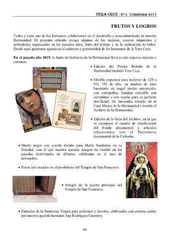 Hermandad. El presente artículo recoge algunas de las mejoras, enseres adquiridos y