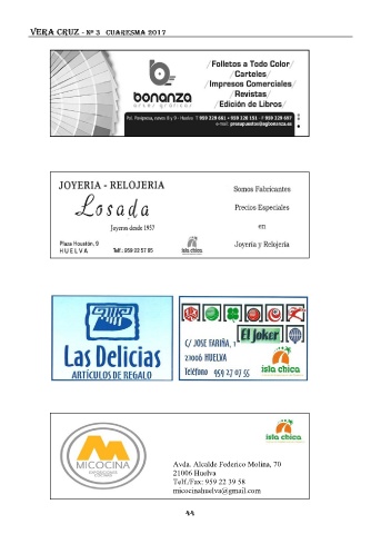Vera cruz - Nº 3 CUARESMA 2017 Avda. Alcalde Federico Molina, 70 21006 Huelva Telf./Fax: 959 22 39 58 micocinahuelva@gmail.com 44