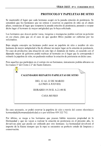 plazo, renuncian al lugar que ocuparon la pasada estación de penitencia, pasando a ocupar