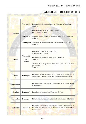 Vera cruz - Nº 4 CUARESMA 2018 CALENDARIO DE CULTOS 2018 27