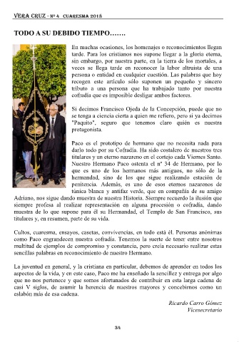 como Paco engrandecen nuestra cofradía. Tenemos la suerte de tener entre nosotros