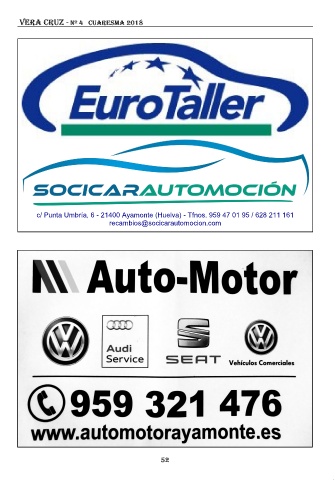 Vera cruz - Nº 4 CUARESMA 2018 c/ Punta Umbría, 6 - 21400 Ayamonte (Huelva) - Tfnos. 959 47 01 95 / 628 211 161 recambios@socicarautomocion.com 52