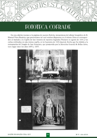 den al traslado a la Capilla de San Antonio de nuestros Sagrados Titulares en agosto de 1975 y los