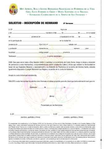 SOLICITO a esta Hermandad me admita como Hermano si hallase propósito para ello, favor que tanta estimación será para mí.