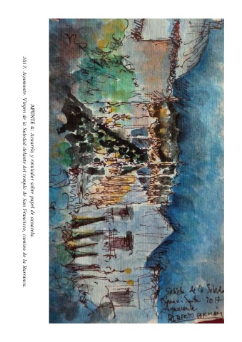 APUNTE 4: Acuarela y rotulador sobre papel de acuarela. 2017. Ayamonte. Virgen de la Soledad delante del templo de San Francisco, camino de la Barranca.